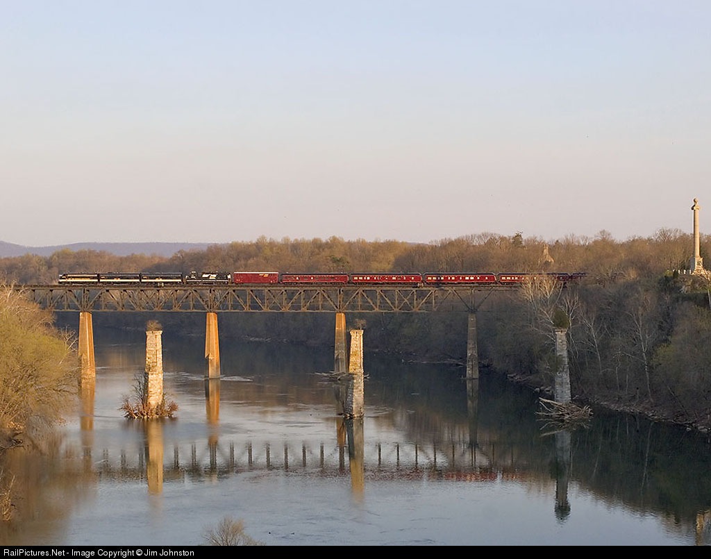 The setting sun provides for colorful lighting for the NS OCS pictured crossing from West Virginia into Maryland. The consist lead by NS 4270, NS 4276, NS 4275 and NS 5648 head home to Altoona, PA west following a week at the Masters Golf Tournement.