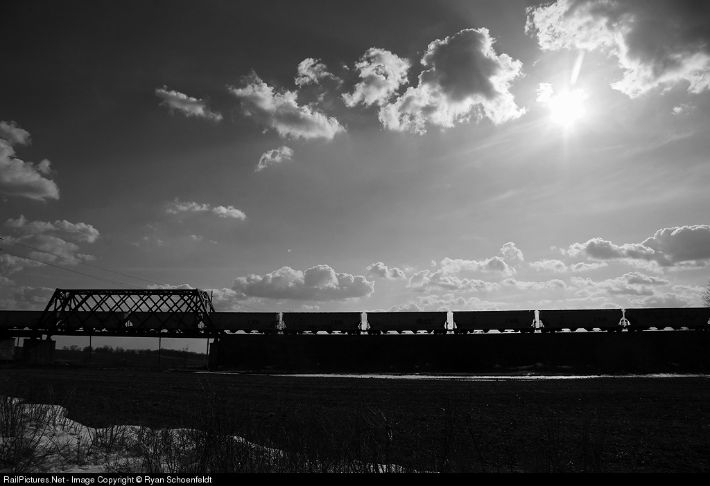 A set of CNW hoppers make for a nice silhouette in the consist of Union Pacific's Valley Park, MN to Proviso manifest.