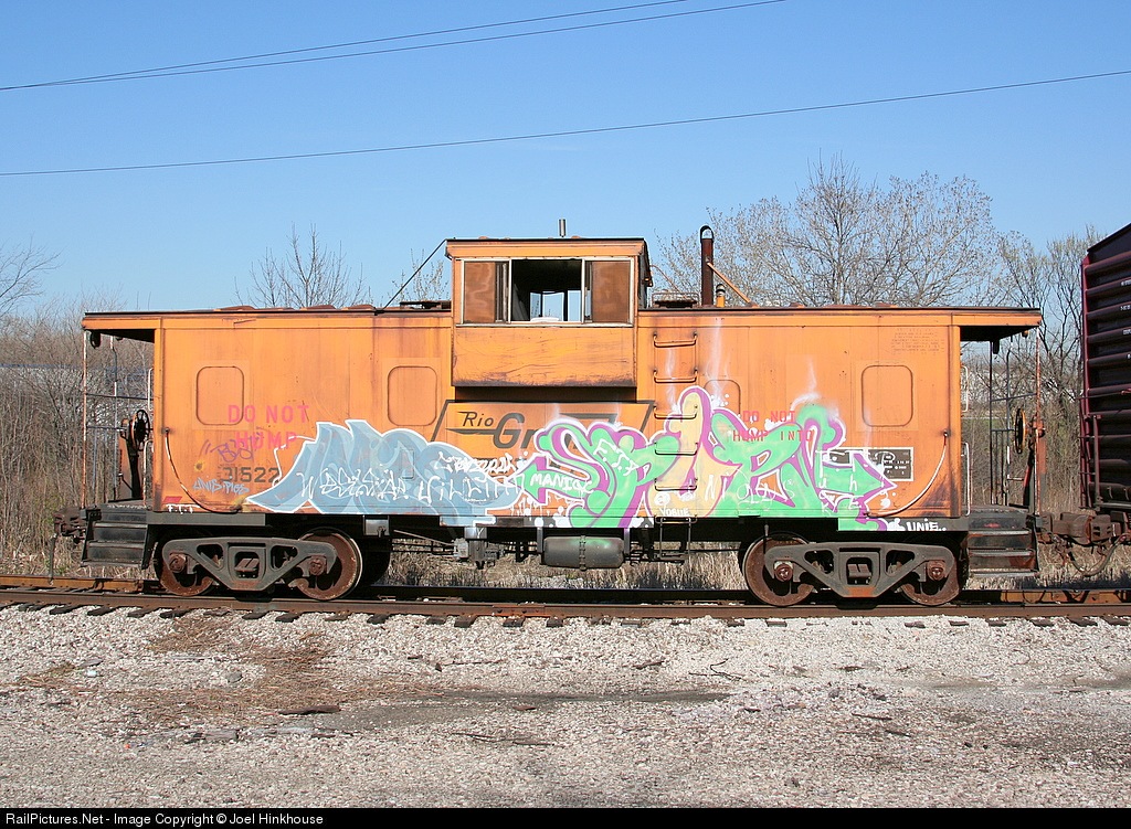 | It was both fantastic and painful to see this Rio Grande caboose still in use. I do not like the modern-style paint job as much as the classic orange & black. Also, notice the "DO NOT HUMP" and "DO NOT HUMP INTO" letters are stenciled ON TOP OF the graffiti. |