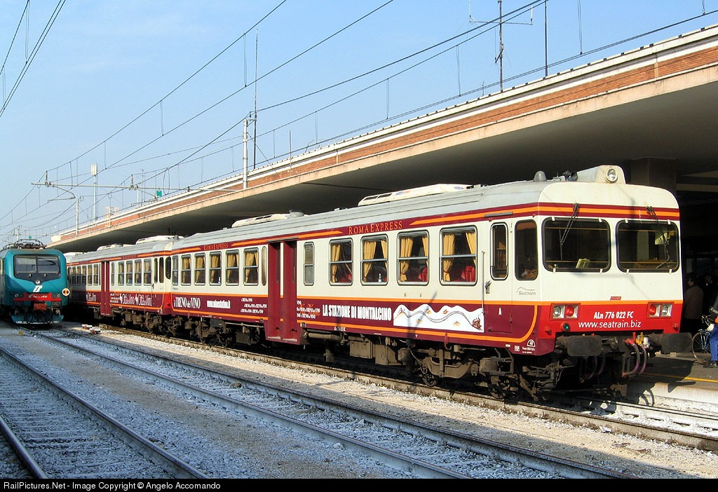 Diesel MU cars class ALn776 owned by Ferrovia Centrale Umbra and rent to Seatrain. This trains is usually used for touristic charters between Civitavecchia and Roma S. Pietro, close to the State of Vatican Europehauled by Serfer. This train was a special