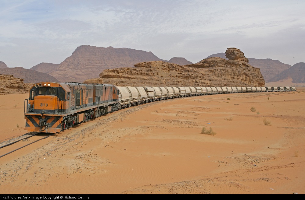 RailPictures.Net Photo: 316 and 310 Aqaba Railway Corporation GE U20 at Wadi rum, Jordan by Richard Gennis