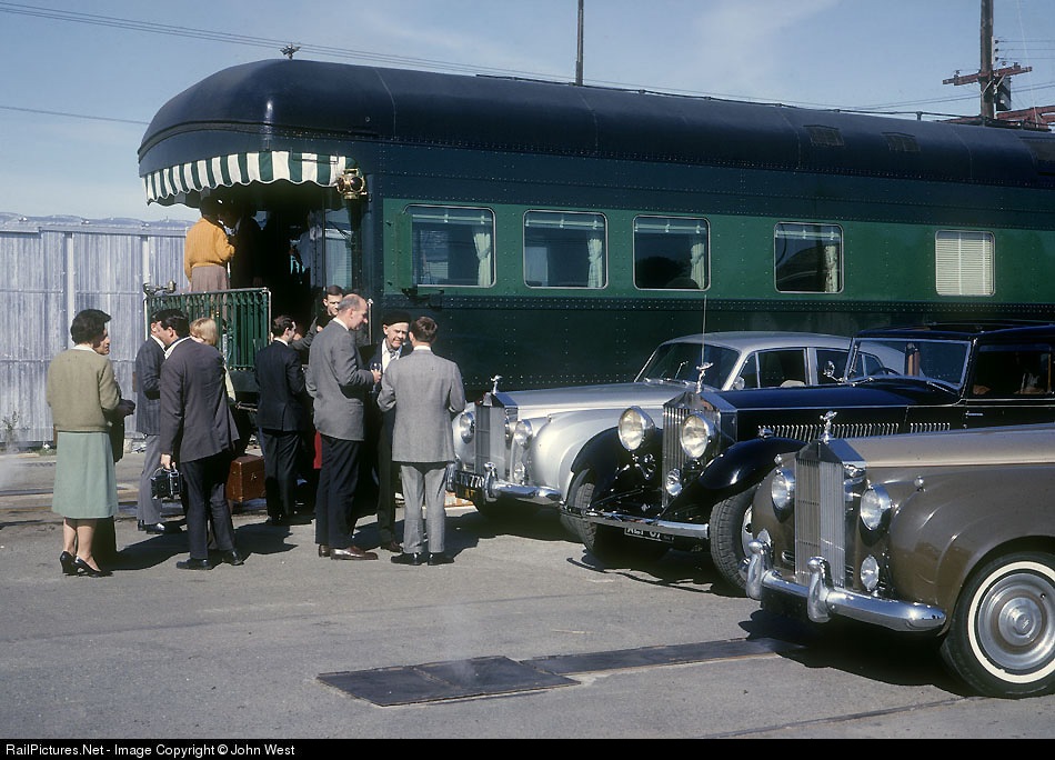 I don't remember a whole lot about this picture, other than the car is the ex-RDG pv Henry E. Huntington at the end of a Santa Fe passenger train leaving Richmond. I believe the passengers were members of a club related to rebuilding historic Rolls Royce autos. Nice way to travel.