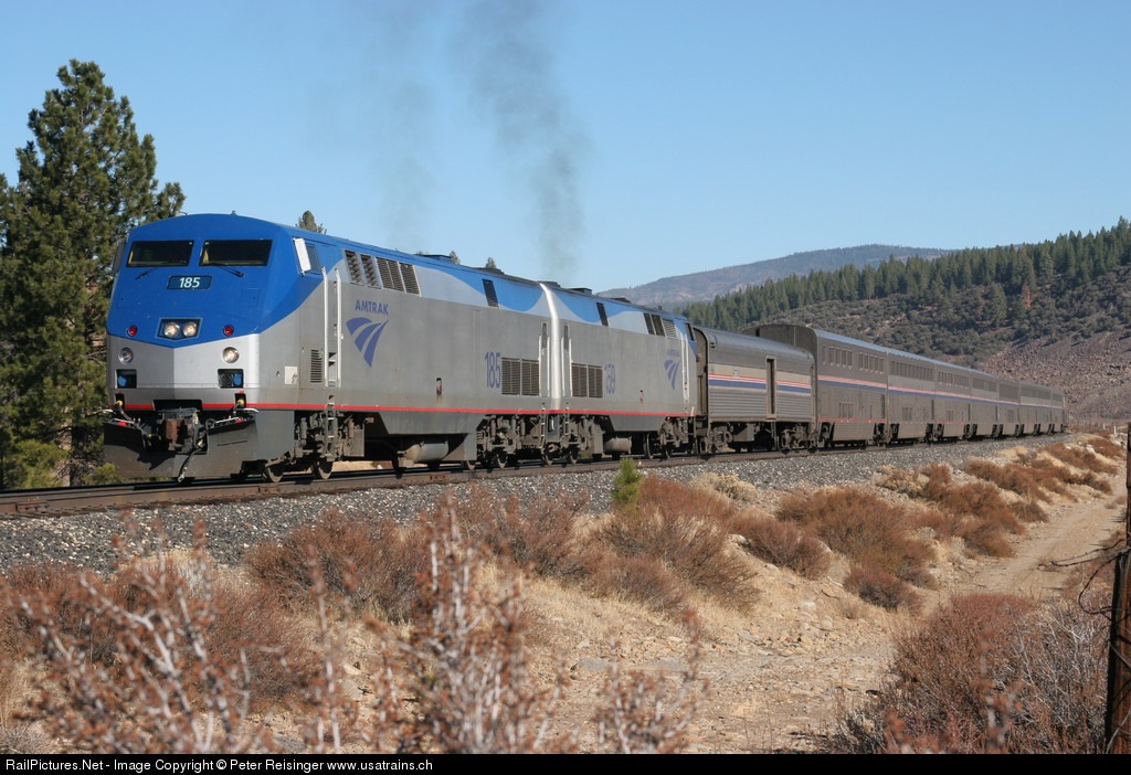RailPictures.Net Photo: AMTK 185 Amtrak GE P42DC at Truckee, California by Peter Reisinger www.usatrains.ch