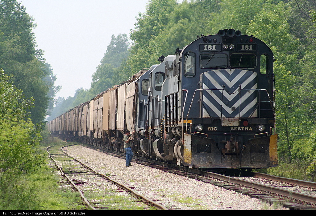 | SBS train Z118 is preparing to pick up a loaded grain train just delivered by Rail America's Mid-Michigan. The Z118 will run through to CSXT Flint and interchange there. |