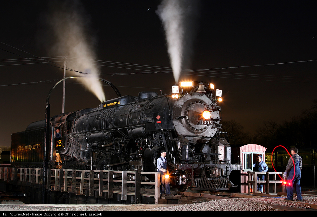 RailPictures.Net Photo: PM 1225 Pere Marquette Steam 2-8-4 at Owosso, Michigan by Christopher Blaszczyk