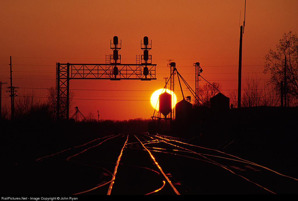 | The sun sets on CSX's Ohio Speedway, but the volume of trains only increases. Scanned from a slide. |