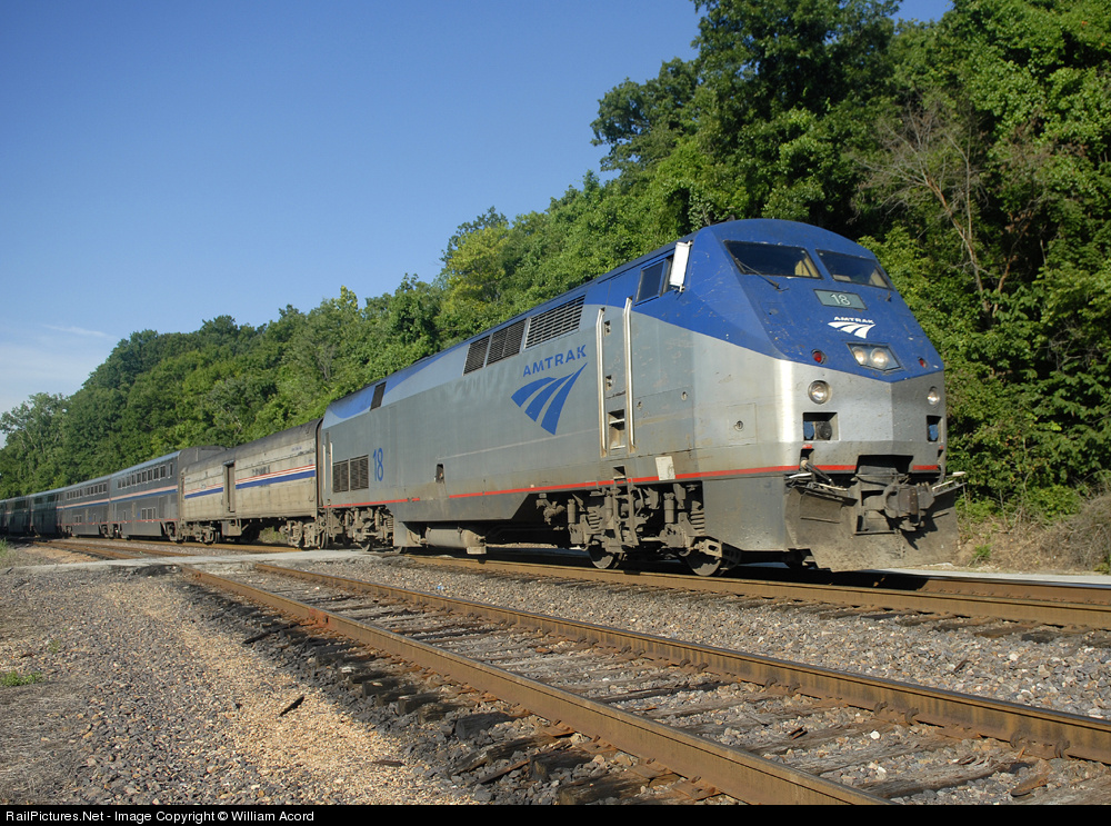 Northbound Texas Eagle running about 1 1/2 hours late on an early, yet very muggy, July morning. The train was filled to capacity with summer vacationers who opted to take Amtrak in the wake of record high gasoline prices. The baggage car is one of the Amtrak "1700 Series" baggage cars. These cars were originally Amtrak Heritage Fleet Budd-built coaches, later converted to baggage cars--Nikon D200