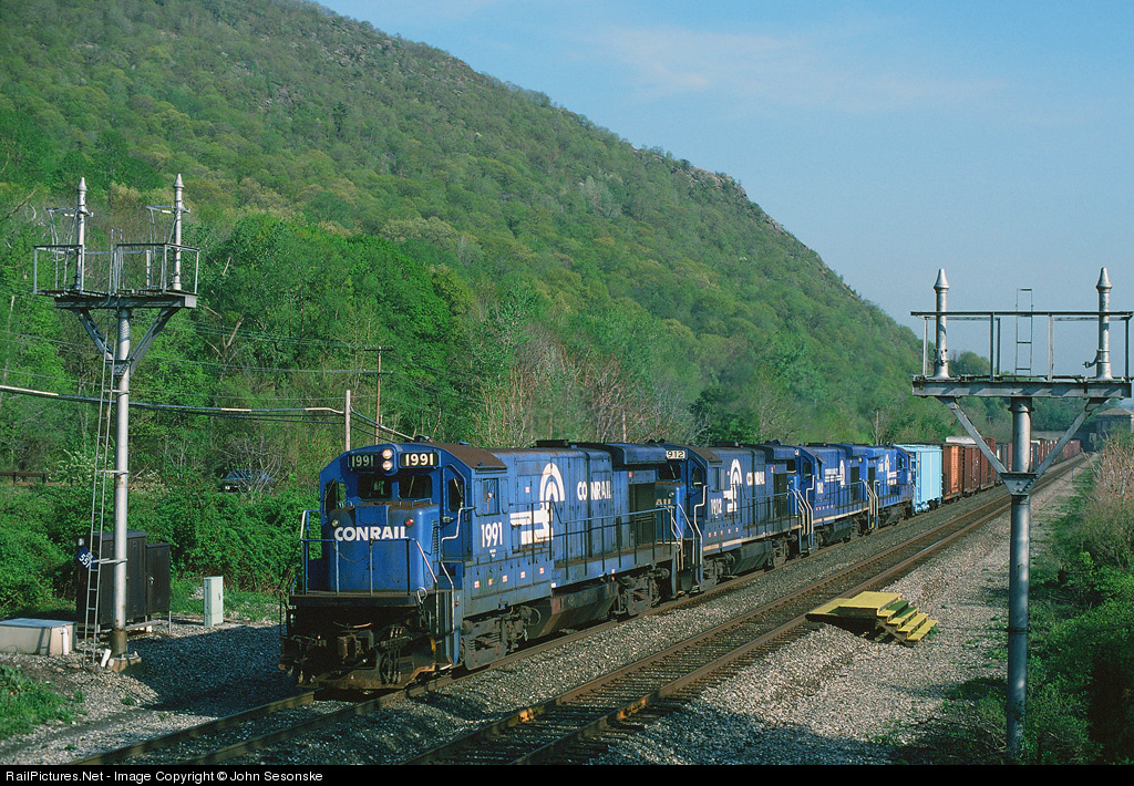 Daylight freight on the Hudson Line. Northbound freight from the GM plant in Tarrytown heads for Selkirk ahead of Friday afternoon commuters. Three more B23-7's trail the leader and include 1912 and 1962. The 2 NB freights on this line at the time, TTEL and OPSE, were both scheduled to run at night so it is very unusual that this was running just ahead of NB commuters on a Friday. Based on off schedule run, I am guessing on the symbol based on consist.