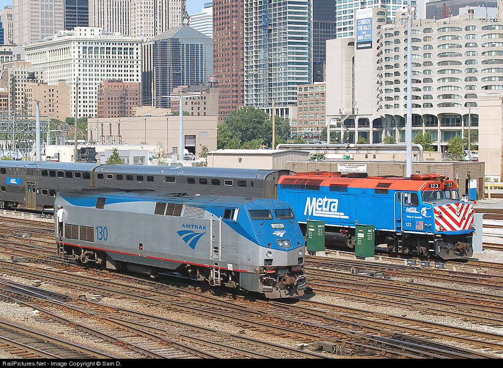 RailPictures.Net Photo: AMTK 130 Amtrak GE P42DC at Chicago, Illinois by Sam D.