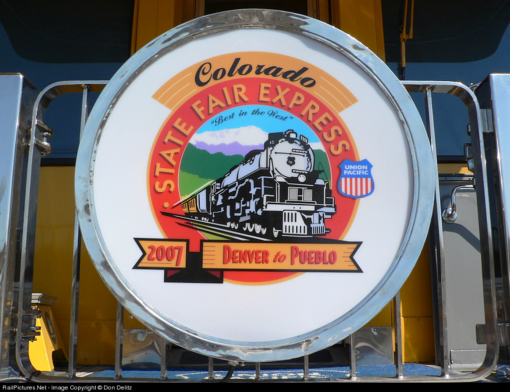 | The drumhead for the Colorado State Fair Steam Special was originally designed with UP 3985 pulling the train but work was not completed in time so UP 844 took over. Hopefully this will become an annual event and next year we'll have the opportunity to see a Challenger again on this scenic run... |