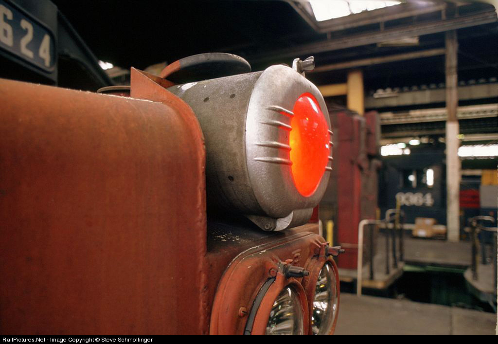 The red "cherry" warning light of SP GP40 7624 glows perhaps its last hours before being removed.
