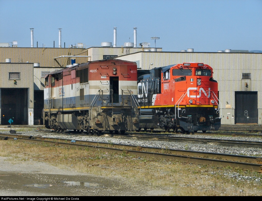 Fresh out of EMDI, CN 8801 sits infront of the diesel shop.