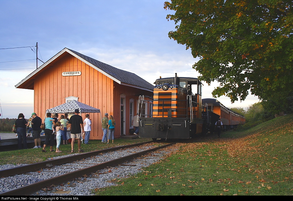 | Arcade & Attica RR 44 tonner #112 prepares to depart the station at Curriers, NY with a southbound tourist train on October 6, 2007. |