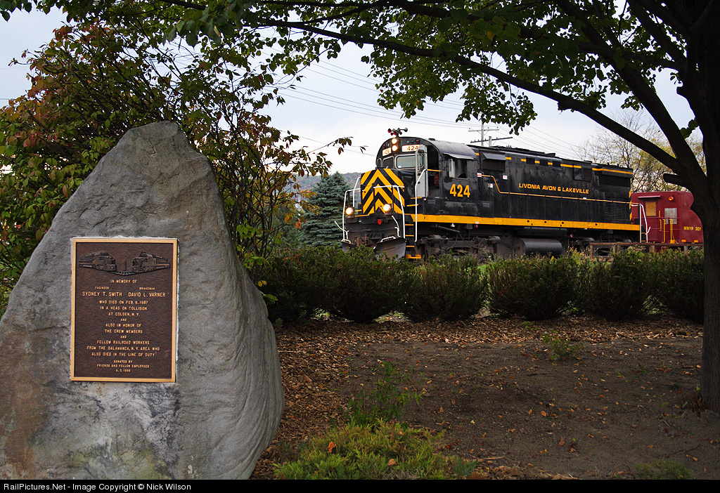 At the Salamanca Railroad Museum is a plaque commemorating two railroaders who were killed in a head-on collision. 424 can be seen idling way in the background, crewless.