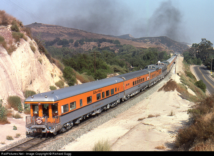 Smoke from SP 2472 wafts over the tail end of the Pacific Shore Limited, with the observation Kansas bringing up the rear of this one-off excursion from the SF Bay area to Los Angeles.