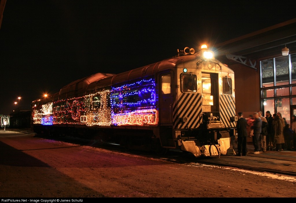 | The NSSR's RDC-1 is all dressed up for the Christmas season. The Polar Express is back in town!!! People are getting on to enjoy the ride back to the Fitgers brewery. |