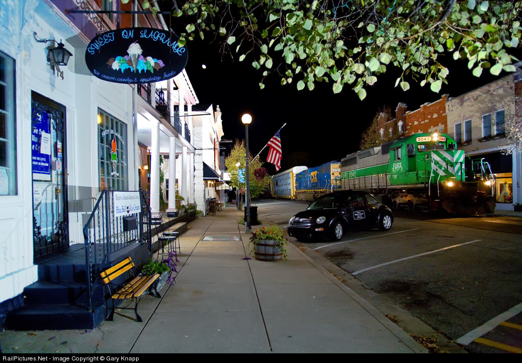 Southbound autoracks come down Main St. past La Grange Mayors' Volkswagon and residence at 22:37. "Sweet On La Grange" is right!