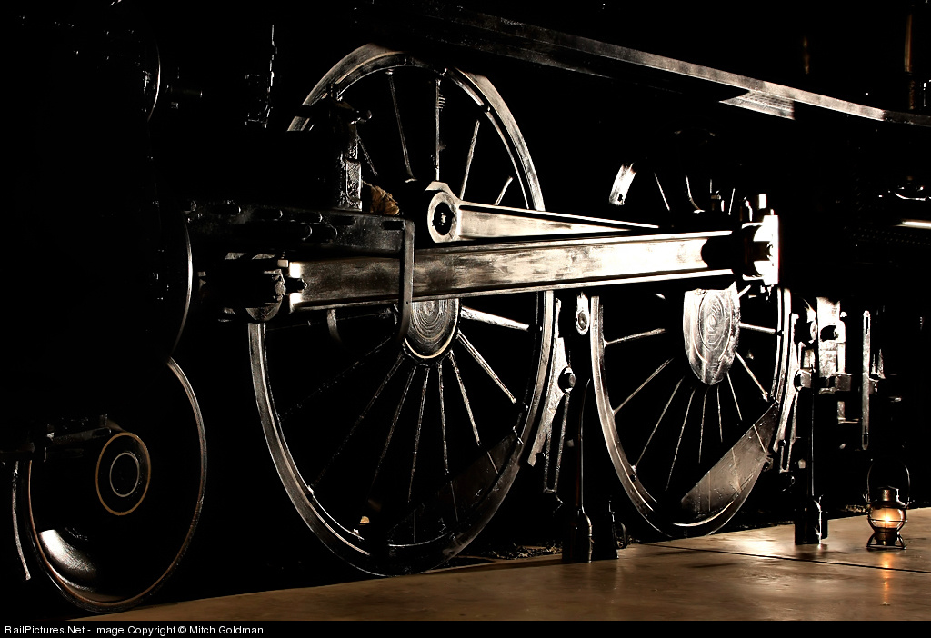 PRR #8063, a rare 4-4-2 survivor, glimmers in the light as PRR #7002 at the Railroad Museum of Pennsylvania.