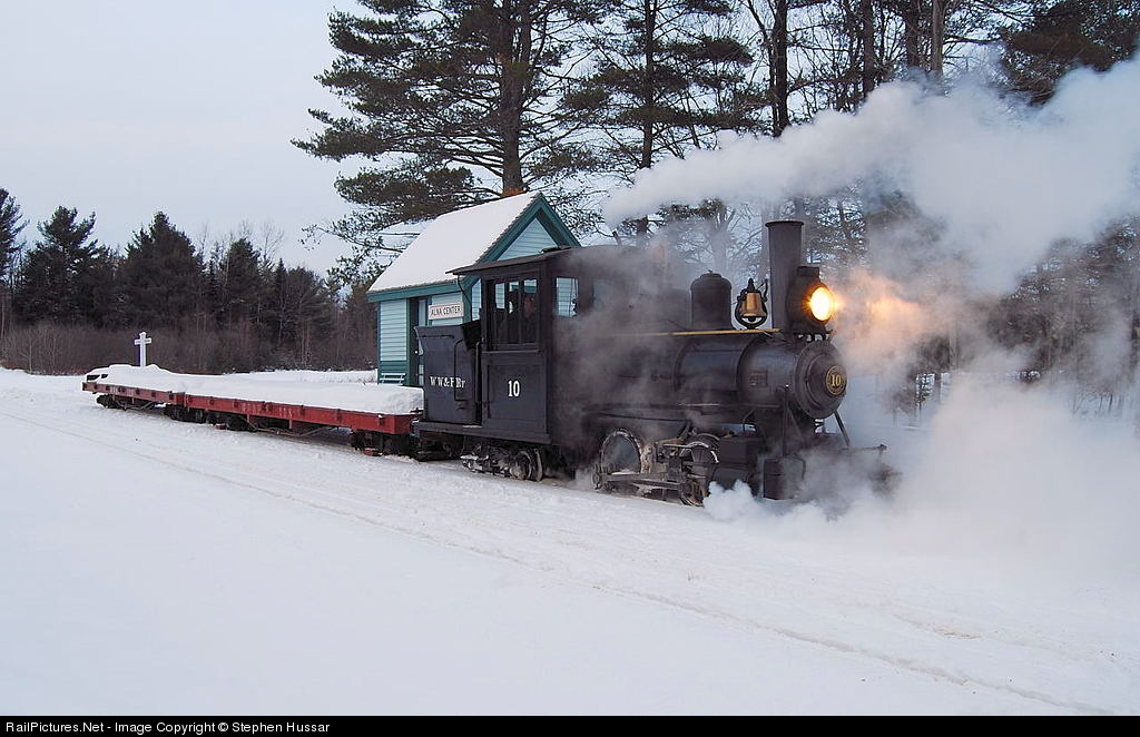 WW&F Railway No.10 and two snow-covered flatcars wait in the frigid air at Alna Center station for permission to head south. I too am one of those who was dragged, kicking and screaming into digital photography. And this was one of my first times out with that new technology.
