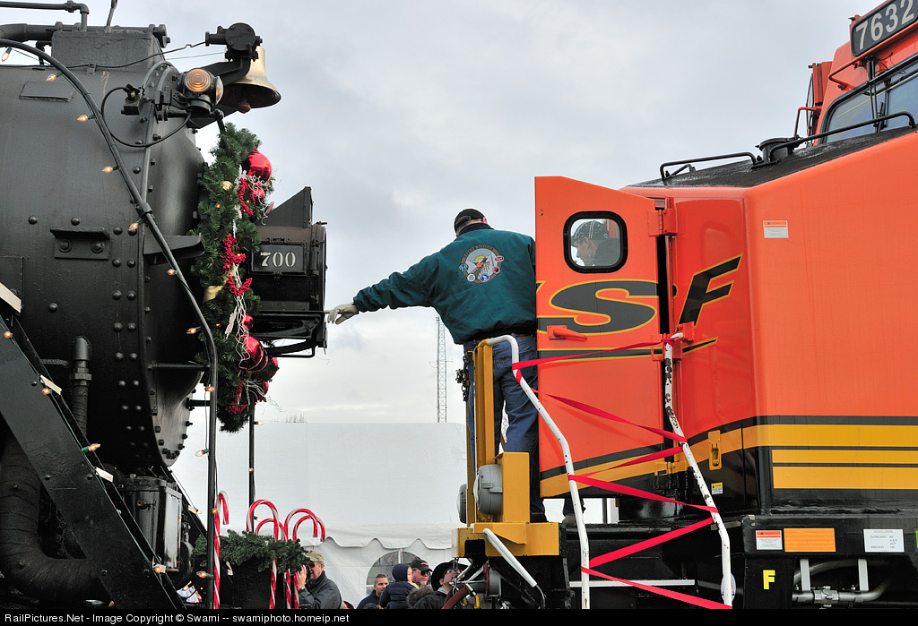 Old and new: SP&S 700 is coupled to BNSF 7632 for a BNSF holiday party.