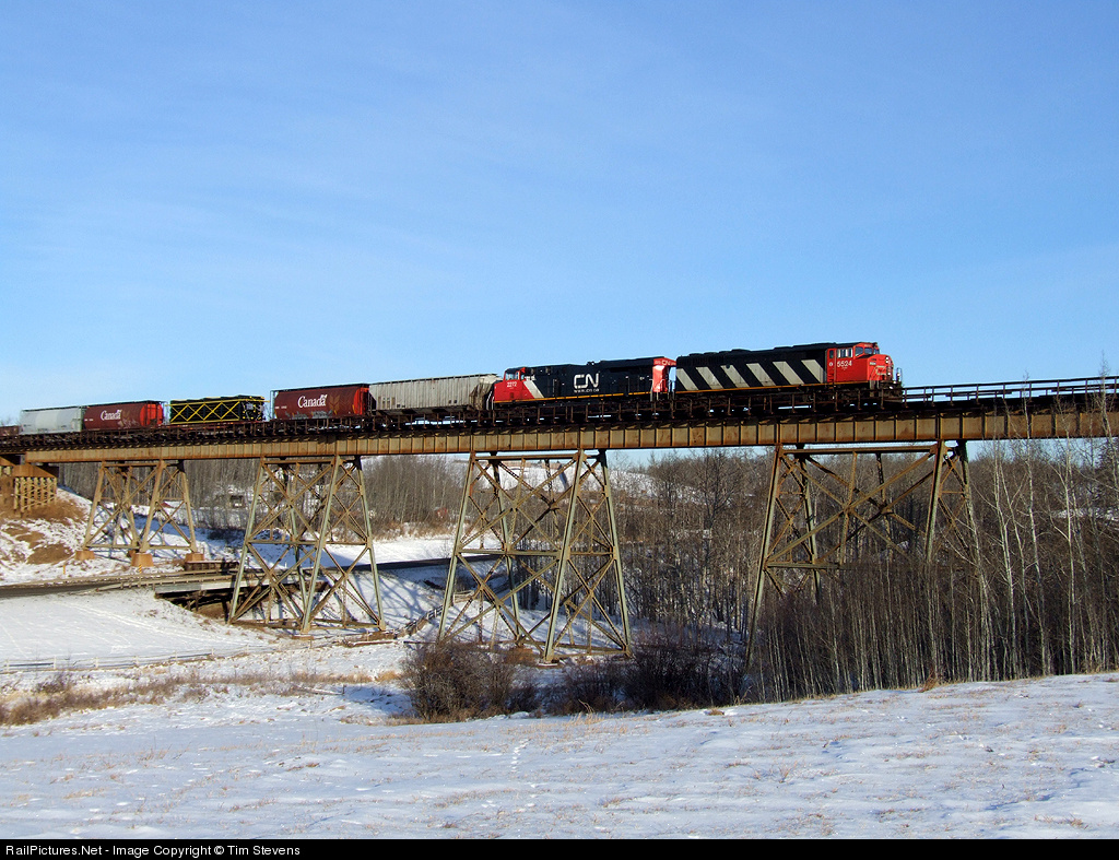 CN 5524 leads train M30051 11 across the trestle between Entwistle and Gainford on the Edson Sub.