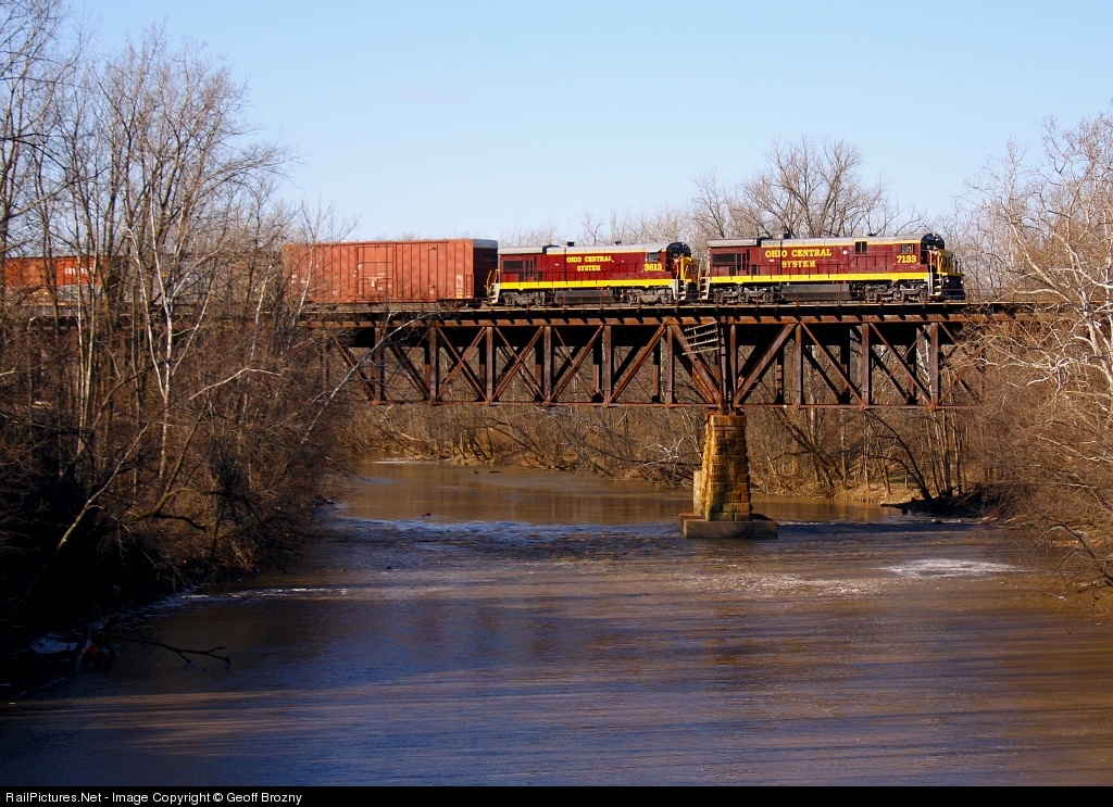 | Ohio Central is returning home from there trip to Buckeye yard, on the NS Buckeye Line, as it crosses over the Scioto River. |