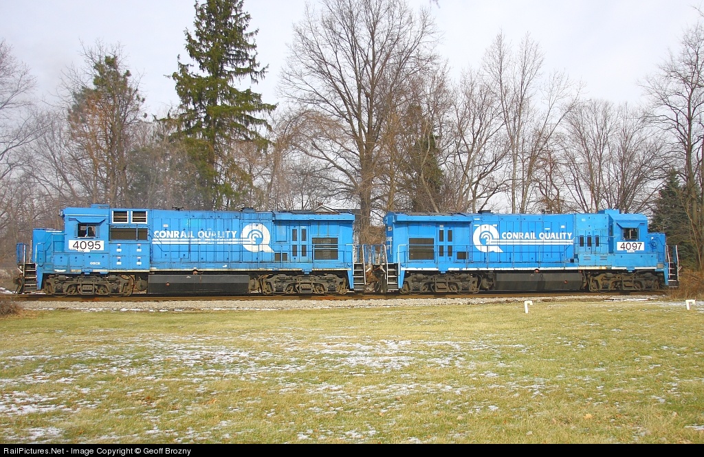 | OHCR 4095 and 4097, both former Conrail Super 7's pull off the siding to begin their work switching out the industries in Columbus on the panhandle line. |