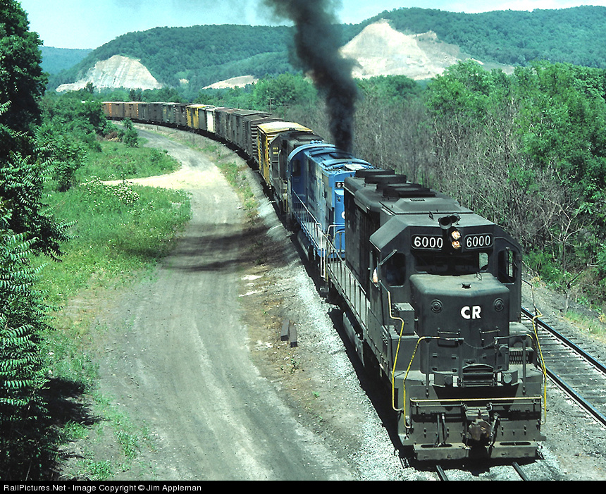 | The 6000 is Conrail's SD35 class unit. The second unit, an Alco Century, demonstrates why an Alco is sometimes called an "honorary steam locomotive". |