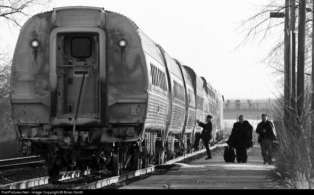 Passengers walk towards the warm Amshack to wait for a taxi, while the conductor is losing no time on getting back on his train.