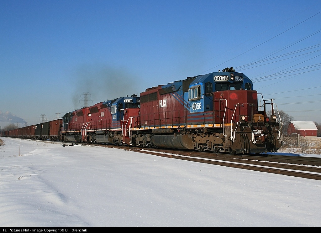 | HLCX 6056, 6518, and 6515 making it's upward ascent from Joliet to Frankfort, IL |