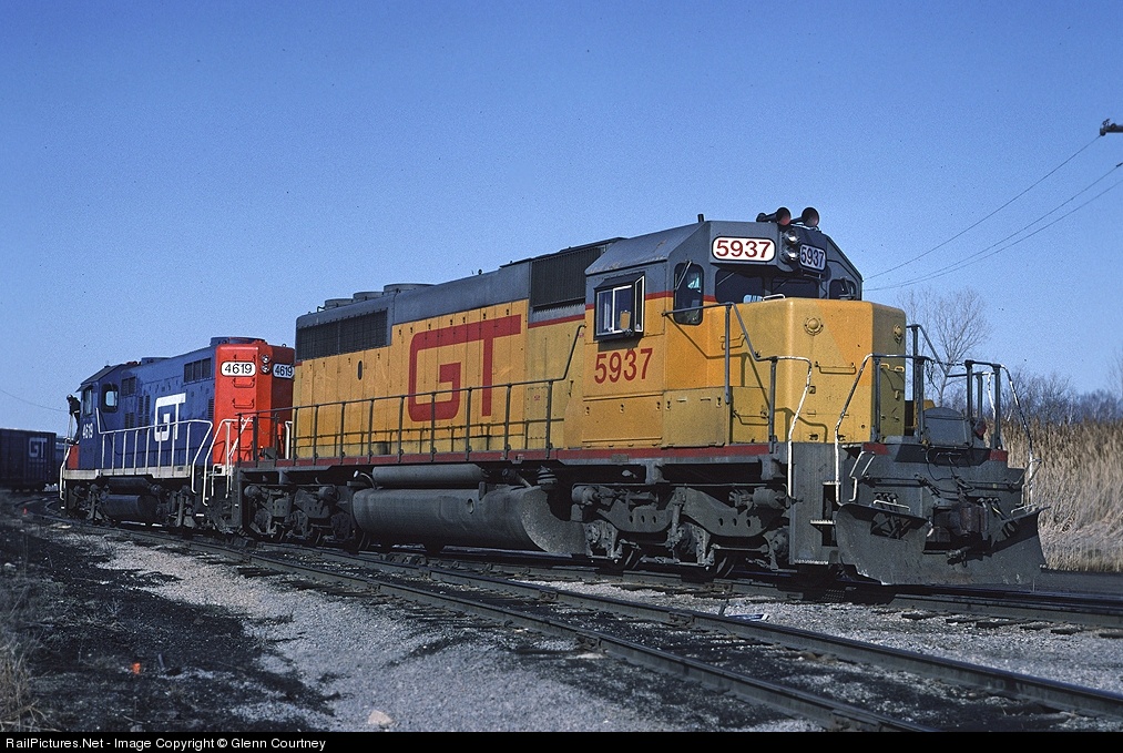 Former UP, nee MP 5937 sits at the engine terminal in Port Huron. This shot was memorable because for some unknown reason I set my camera down on the car roof, forgot about it and then watched it slide down the windshield and off the front of the car onto the ground. But Pentax MXs are tough, it took a licking and kept on taking photos for a number of years after that.