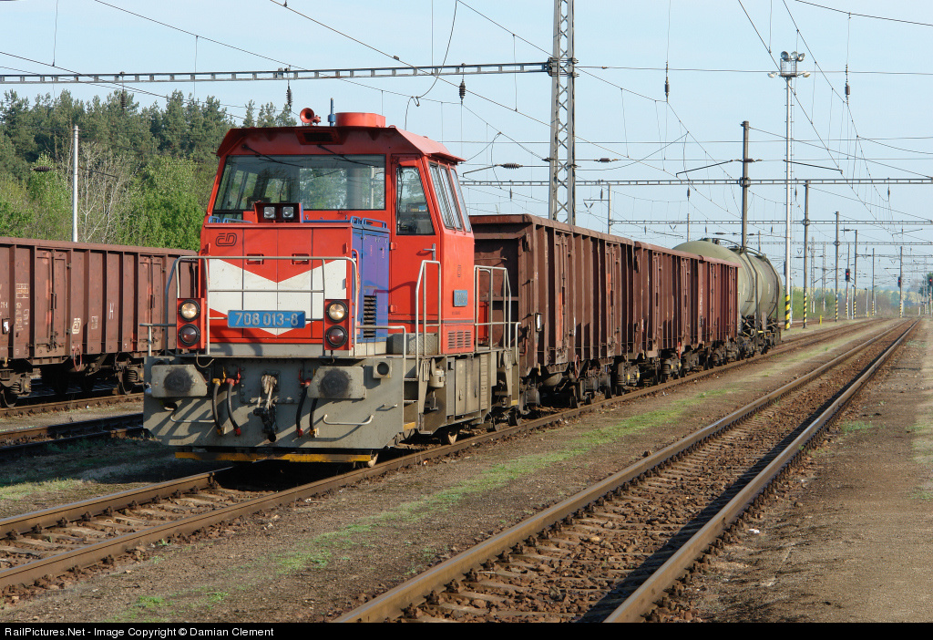| Not one of Ceske Drahy's most powerful locomotives, 708013 is seen at Cicenice with a small trip freight. |