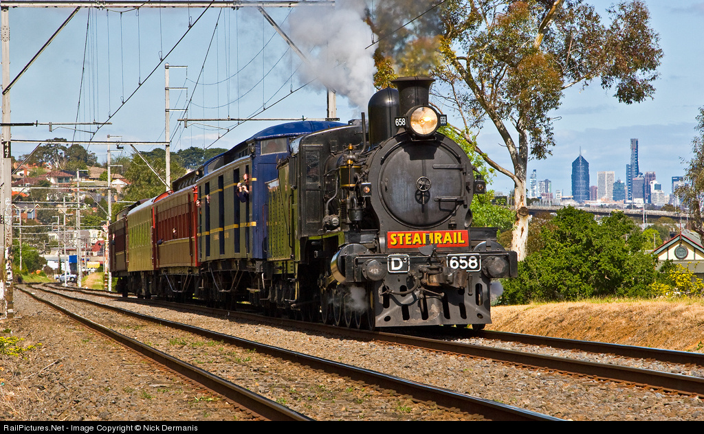 | D3 639 disguised as D3 658 running a charter to Somerton Loop seen here on approach to Oak Park station with the city of Melbourne in the background. Many thanks to James Hansen for providing times. |