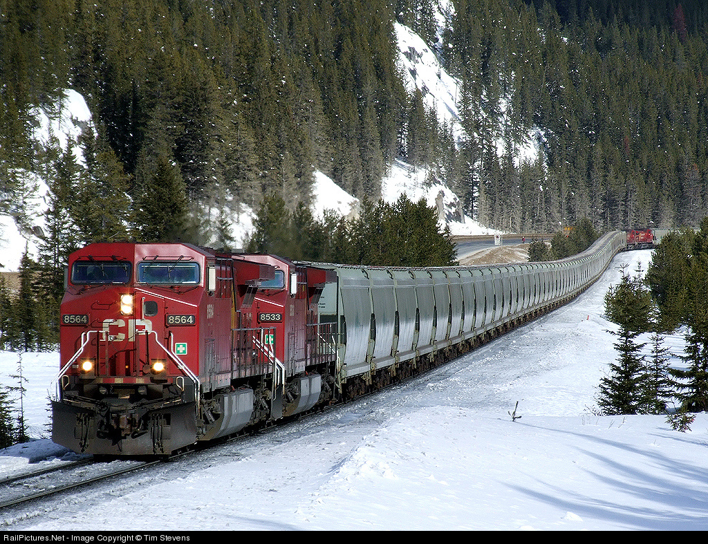 CP 8564 leads 671's train out of the Hector dip west of Stephen.