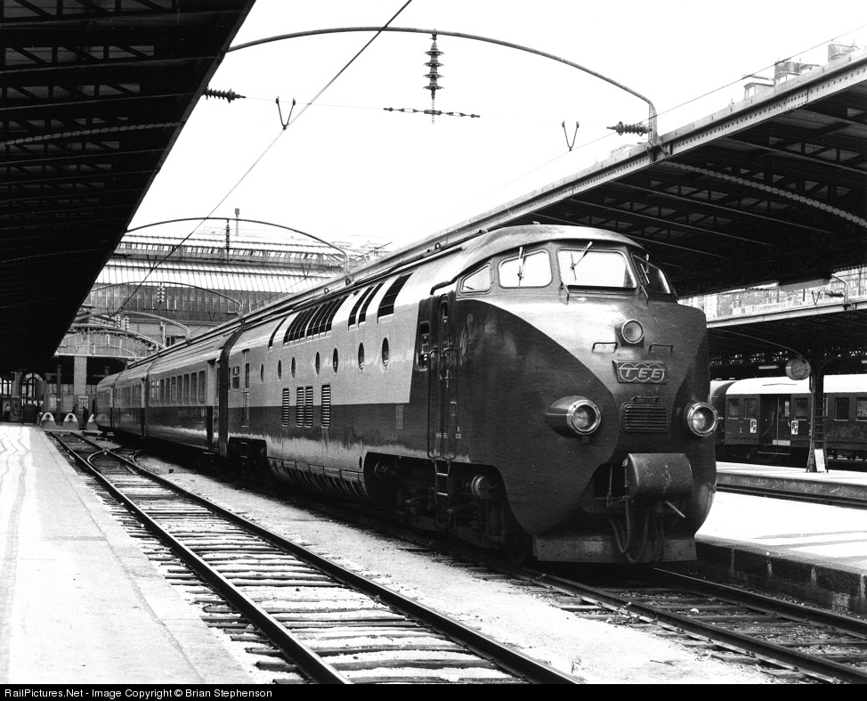 | Having seen Michael James photos (photo id 225057/8) of a TGV and ICE at this station I thought this shot from 42 years ago at almost exactly the same spot would be of interest. The train is the 17.30 'Le Arbalete' Trans European Express to Zurich. There were five of these Dutich/Swiss units, four later sold to Canada for the Ontario Northlander service. |