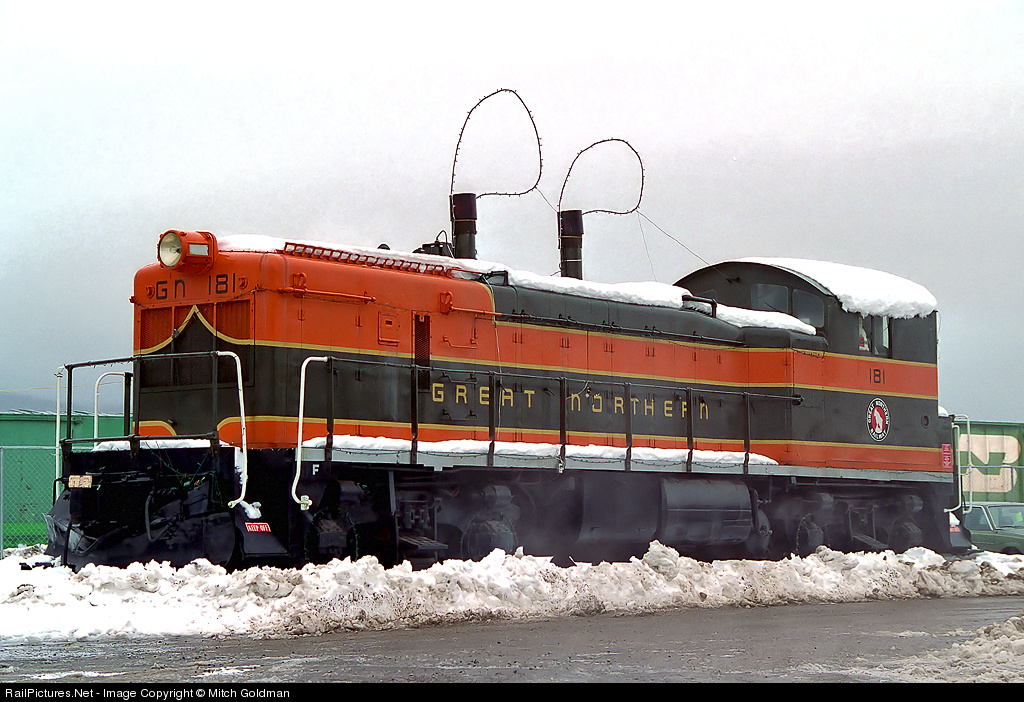 One of seven built exclusively for the Great Northern, #181 survives as a display in Whitefish, Montana. Here, dressed up for the Holidays. Sister unit #179 is rumored to be operational, right here in my own back yard at the A.E. Staley Co in Morrisville, PA.
