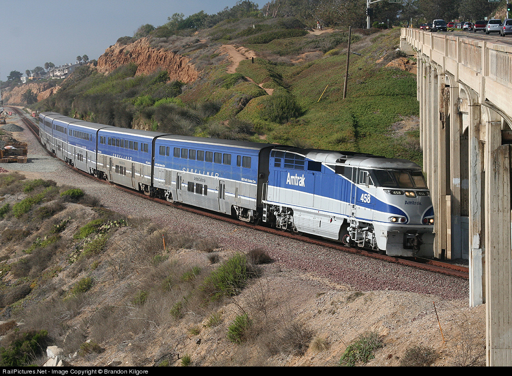 RailPictures.Net Photo: AMTK 458 Amtrak California EMD F59PHI at Del Mar, California by Brandon Kilgore