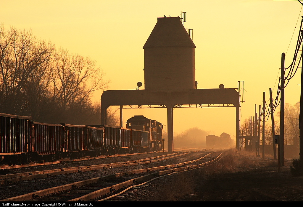 8am Friday Morning, UP 4018 & 9058 lead mixed freight under the Nelson coal ing tower.