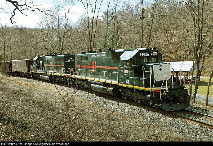| Former DT&I #252, now working as Trap Rock Transportation 2002 for the Haines & Kibblehouse quarry at Birdsboro, Pa |