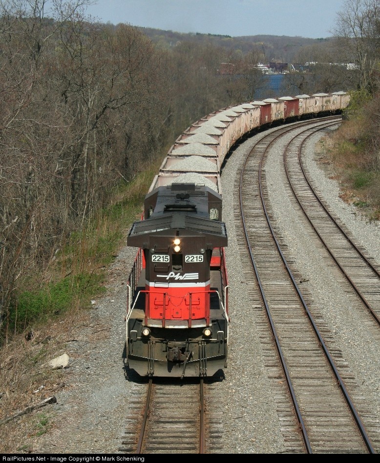 P&W train NR 3 with long hood first makes a rare appearance to the Connecticut shoreline. Most of the time this train stays north of the U.S. Sub Base but today it brought stone to Tilcon in Groton CT.