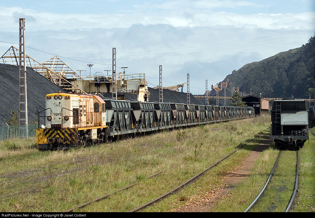 1512 at Aboño (Gijón) is a long way from it's other 12 classmates on the scenic La Robla route. It has been stationed here for some time now, its sole job being to draw coal trains through the hopper house in the background for unloading. Note the two disused broad gauge (5' 6") tracks in the grass between the two sets of metre gauge rails.