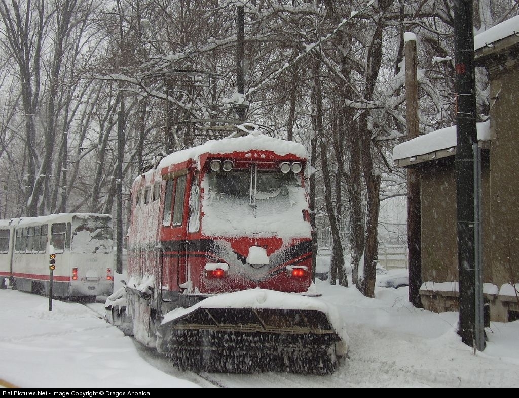 Snow-plow tram type 3VU working at Ghencea Terminal (lines 41 and 47).