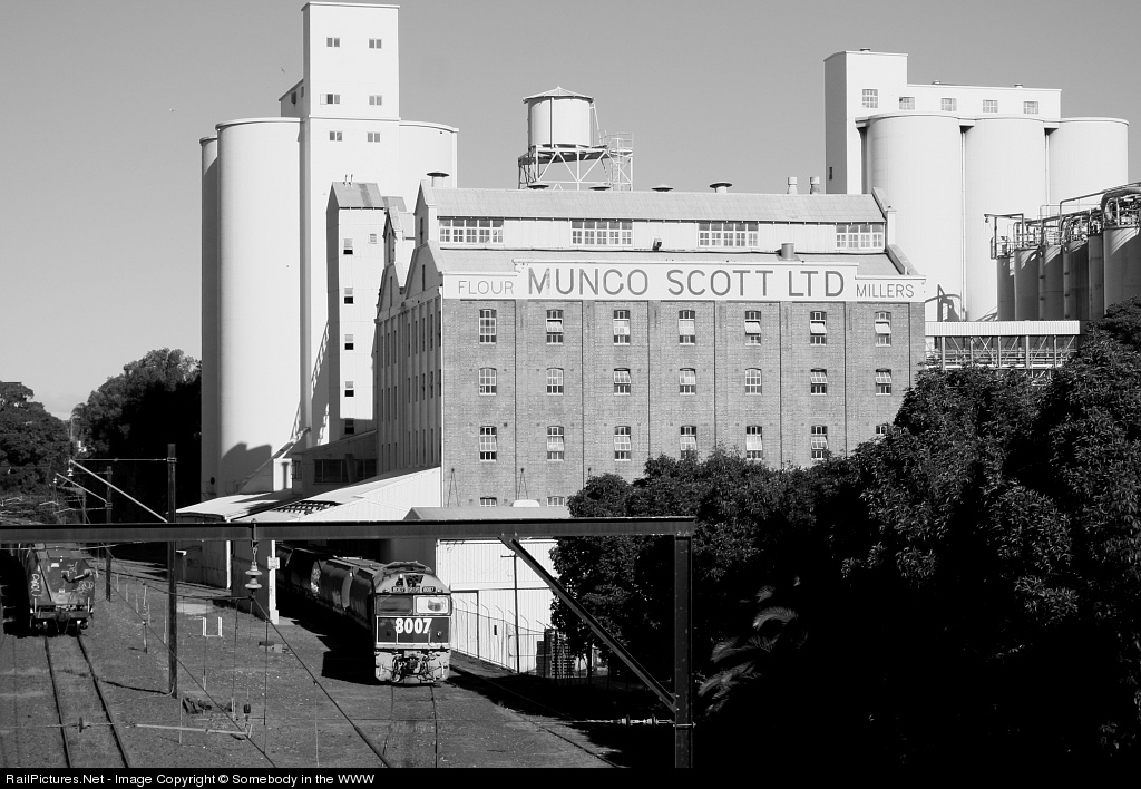 | 8007 sticks it's head out of the Allied Mills siding at Summer Hill while shunting the tri-weekly train. A new facility is now being constructed to replace this old mill, when done so this railway line will fall into disuse and the mill is proposed for redevelopment. |