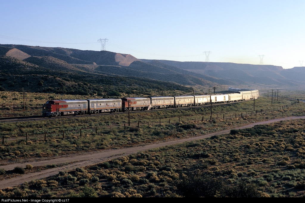 The Amtrak "Super Chief" is seen westbound in the early morning sunlight acouple of miles east of summit. Soon to be renamed the "Southwest Limited", it is still using the Santa Fe equipment that was the "Super Chief / El Capitan".