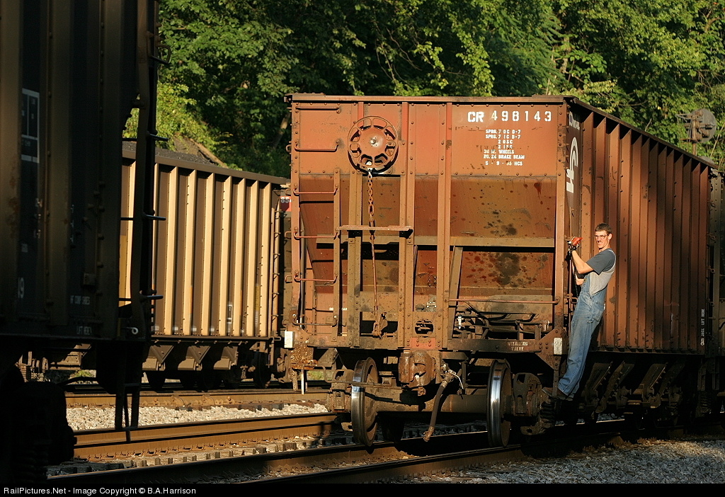 | The daily late evening ritual of building a minerun with mtys along the Buchanan siding at Devon as the last golden rays of sunlight are leaving the Tug Fork valley. This brakeman offered asst. after finishing his job at the Cedar Welcome Center. |