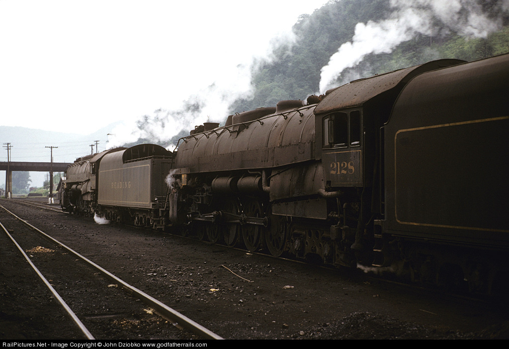 It was cheaper for the PRR to lease servicable steam, such as these Reading T-1s, rather than perform expensive class repairs (essentially rebuilds) on their own steamers destined to the scrap heap soon at any rate. Because of that philosophy railfans were able to catch foreign steam in Pennsy outposts like Renovo, PA., and Columbus OH., near the end of steam. Of the nine T1s leased, most were scrapped in '57 except for 2128, which lasted until 1960.