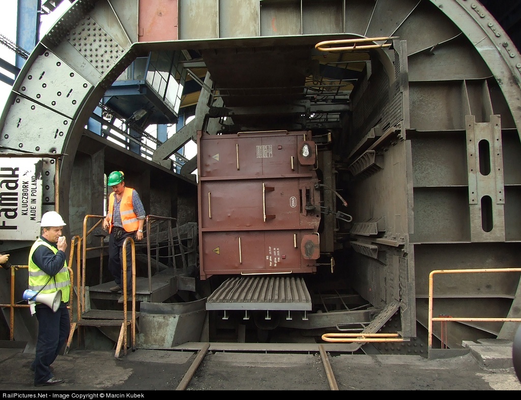 Coal unloading by rotate of wagon. Skawina Power Plant unloading area.