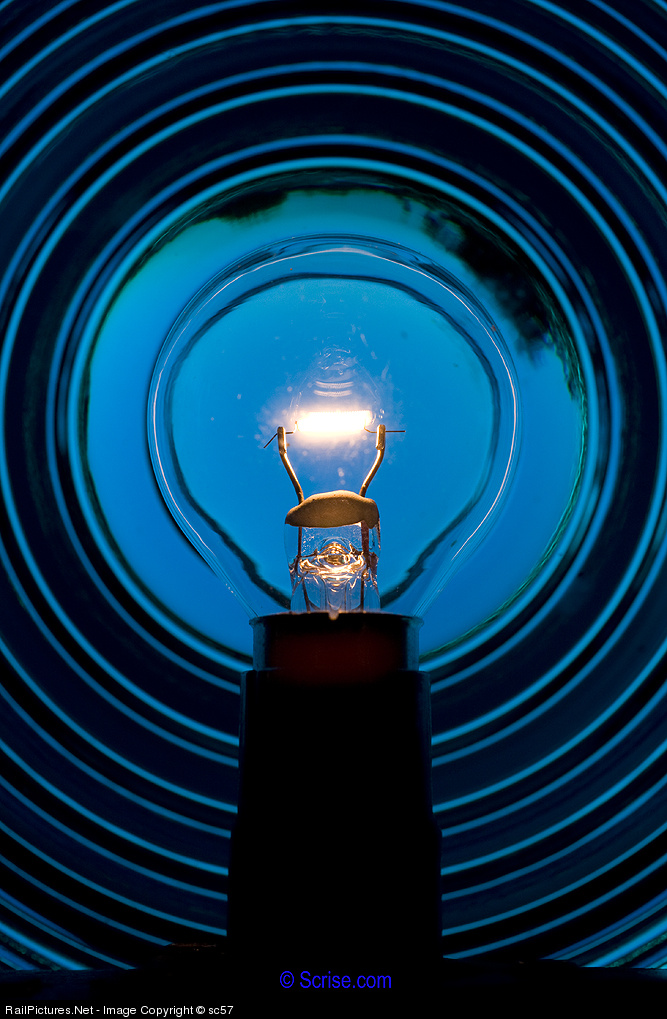 Shot of a 12 volt signal bulb inside a Union Switch & Signal Style R color light signal.