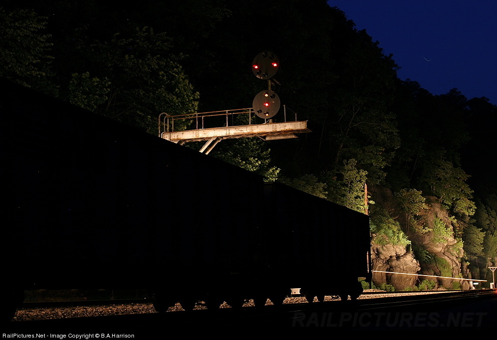 An eastbound grain train passes under the old signals at Wharncliffe, while mtys destined for Bens Creek hold the center siding down. These old signals will probably be the next to be replaced after the ones at War Eagle within the next thirty days.