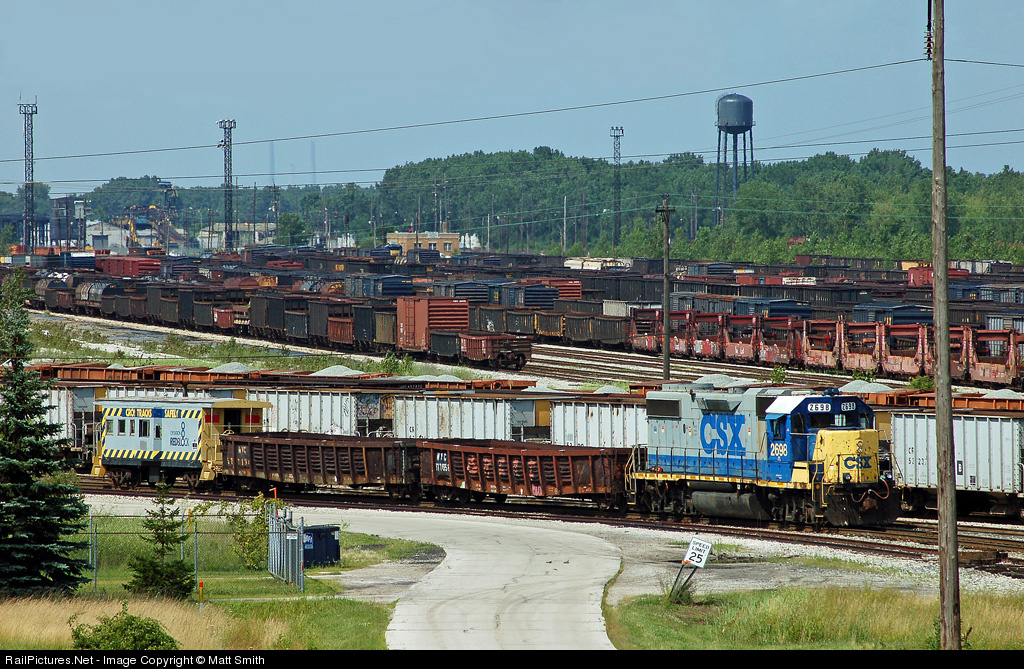 In a scene that contains just about everything for everyone, CSXT 2698, sits after working Y12210, at the Toledo Docks. In this photo we have ballast train, bad order cars, storage cars, in the back the rotary coal unloader, and even Toledo Edison's Bayshore Power Plant.